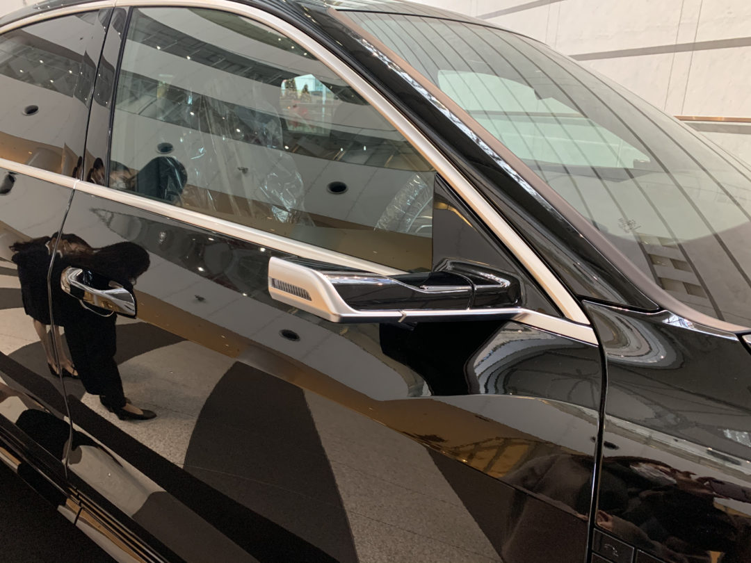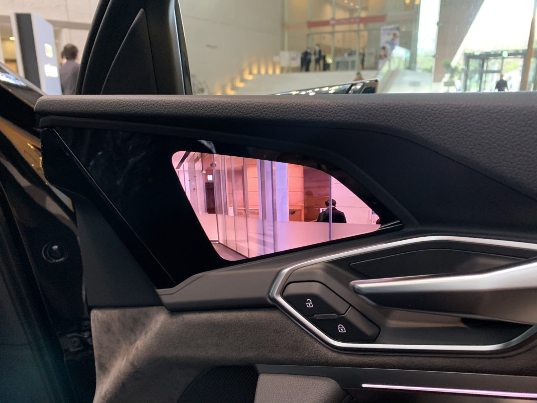また、今回展示したAudi e-tron Sportbackは、電子ミラー「バーチャルエクステリアミラー」を装着していました。