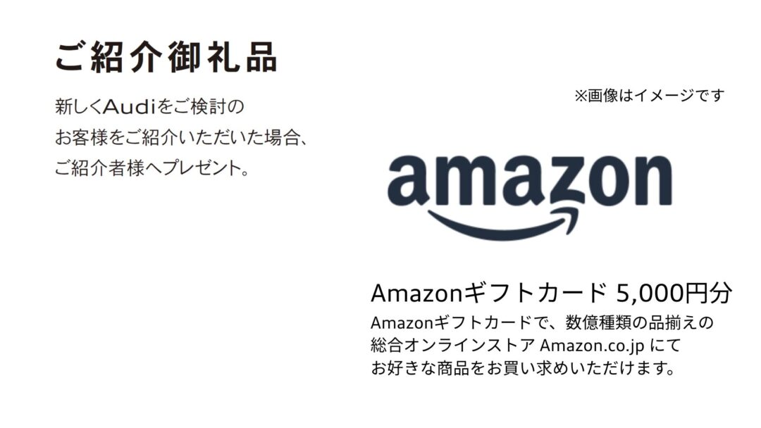 ご紹介いただいたお客様がAudiの新車をご成約いただいた場合、ご紹介者様へプレゼント。